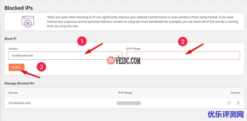 Blocked IPs 是用来抵挡网站攻击者,举例:若是有来自某人的垃圾留言,就可以封锁他 IP。