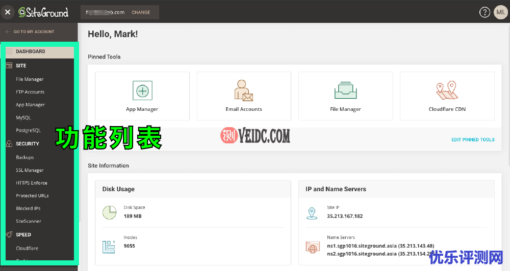 Site Tools 是 SiteGround 自己开发的系统管理后台,除了优美的网页设计外,重要的是有多种系统功能,可供你使用。