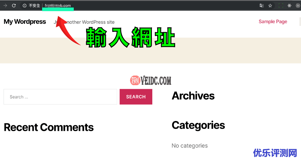 在浏览器中输入刚在SiteGround申请的域名,看一下努力的成果。