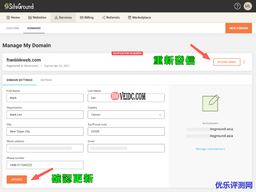 如果当初在 SiteGround 注册网址+主机申请时,忘记「 WhoIs 认证 」。