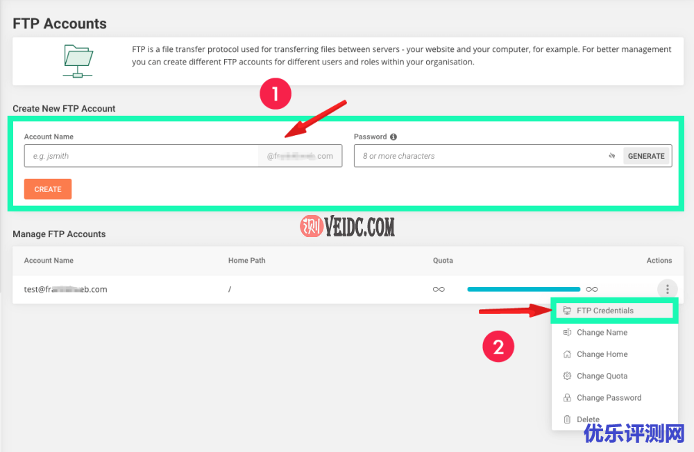 填入想设定的使用者帐户和密码,确认后生成 FTP 帐户,再点选 FTP Credentials,开启连线资料,如下图。