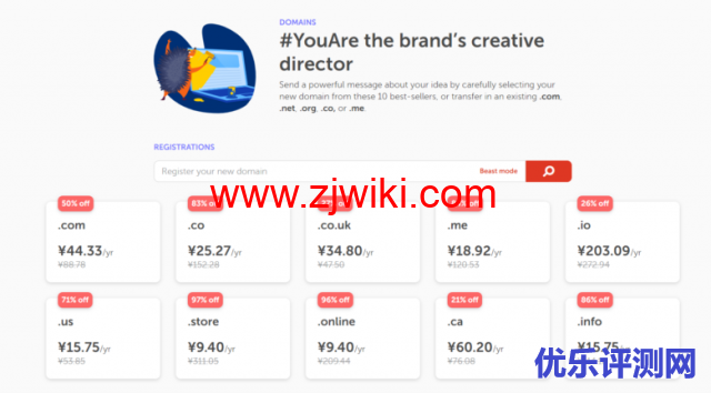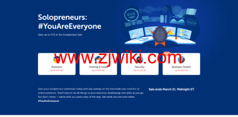 本次Solopreneurs促销活动中,第一年注册域名、.co域名、.co.uk域名、域名、.io域名、.store域名等,最高可享97%折扣,不需要使用优惠码,直接下单购买即可。