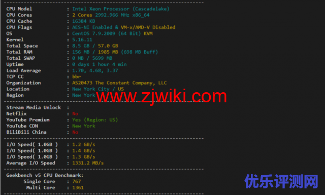本文对Vultr美国纽约机房云服务器做一下测评,了解一下机器性能、下载速度、速度延迟、路由丢包、性能测评、流媒体解锁等