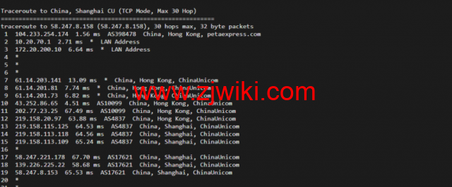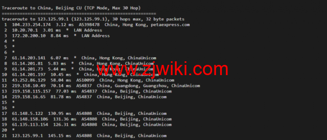 回程,到国内联通,联通骨干直连回国