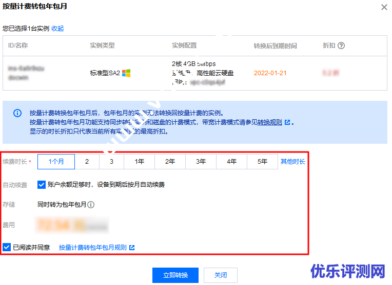 - 勾选 “已阅读并同意按量计费转包年包月规则”,单击立即转换。