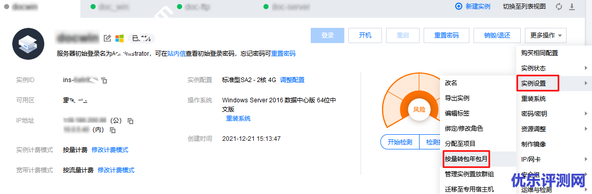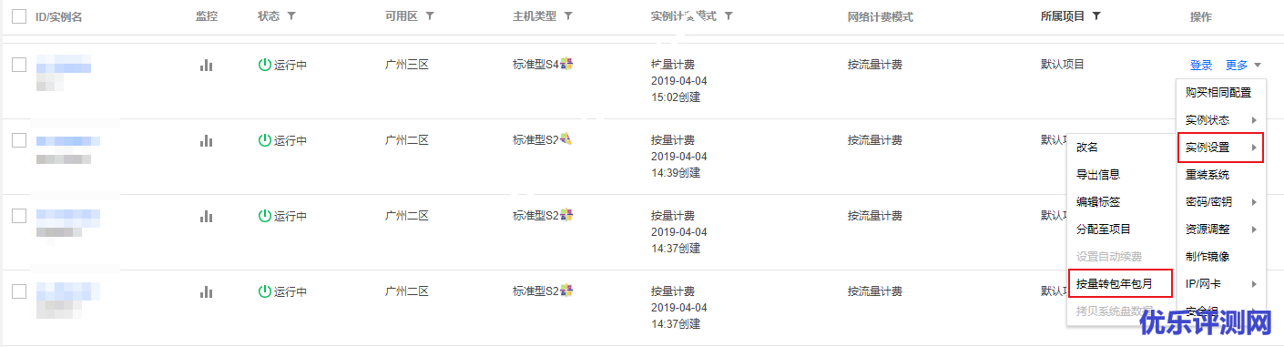 列表视图:在右侧的操作栏中,选择更多>实例设置>按量转包年包月。如下图所示: