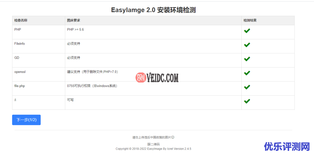 - 首次访问首页会检查环境并在config目录下生成EasyImage.lock
