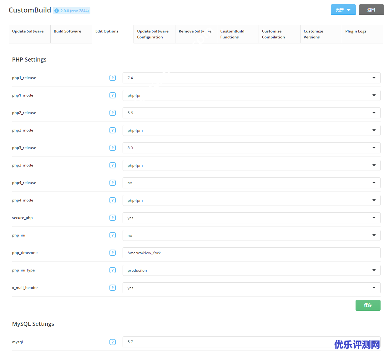 http://你的服务器IP:2222 即可进入面板,其它的安装配置我们可以进入面板后在custombuild完成。这和现在的宝塔面板基本上也是差不多的。