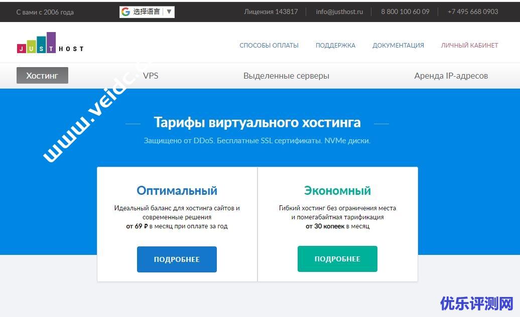 JustHost,俄罗斯主机商,2006年成立,提供各种主机服务,vps基于kvm,有HDD和SSD硬盘两种,特色是200Mbps不限流量(之前是100Mbps,现在升级为200Mbps)。下面是HDD硬盘的KVM VPS,性价比最高,此外还有SSD硬盘的KVM VPS,价格略高。支持支付宝、Paypal付款。国内建议选择新西伯利亚或者莫斯科DataLine,现在亦可选择美国达拉斯数据中心。