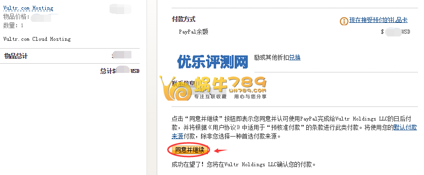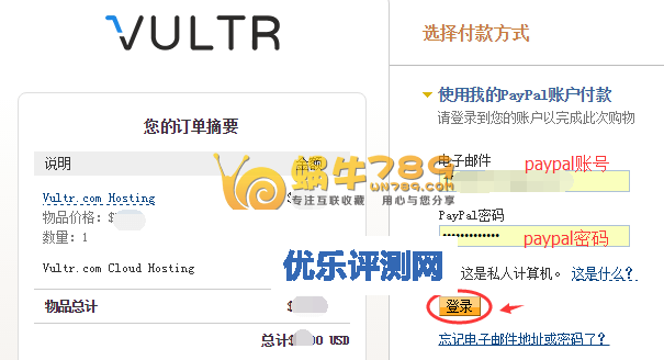 Vultr VPS账号充值验证支持国内双币信用卡和Paypal充值、支付宝。教程里使用的是aypal充值。现在支持支付宝付款的,大家可以利用支付宝充值。