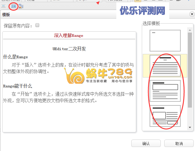 2、可以根据需要选择文章内容排版布局模板。