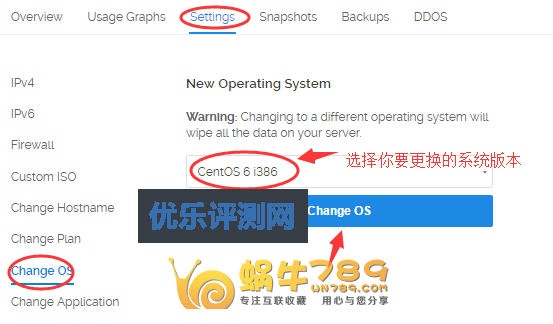 3、如果要更换系统版本,请点击“Settings”,然后再点击“Change OS”,选择要更换的系统版本,点击“Change OS”按钮安装。