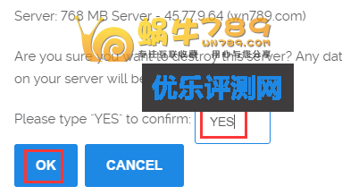 2、选择重装之后需要输入”YES”确认重装。重装的系统版本是你创建VPS是选择的版本。