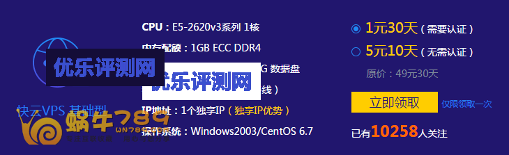 景安网络3月最新活动,新注册用户完成实名认证1元购30天VPS体验,体验机器配置为1核1G内存70G硬盘1Mbps,可选择Windows2003、CentOS 6.7系统。没有注册过景安网络账号的朋友不妨试试。
