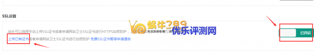 1、首先需要把自己的站点配置好SSL证书,开启https访问。关于如何安装SSL证书,蜗牛789介绍了几种常用的VPS面板如何安装SSL。大家可以参考。
