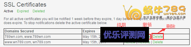 2、在SSL列表中找到要续期的证书,点击“Renew”续期。