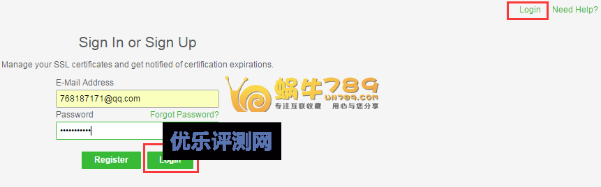 1、如果申请过程中注册了账号,那么当申请的Let’s Encrypt免费SSL证书快要到期实你的注册邮箱会收到续期提醒。我们点击这里进入SSL For Free。然后点击右上角“Login”登陆自己账号。