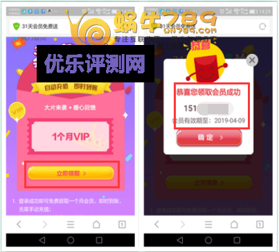 2、进入活动页面后,点击“立即领取”登录PPTV账号即可成功领取。蜗牛这次领取后会员有效期已经到2019年4月9日了。