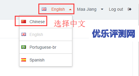 在首页点击“Log In”登陆后。我们可以更改语言为简体中文,这样管理起来就更方便了。中文页面大家都能准确操作,就不做详细介绍了。