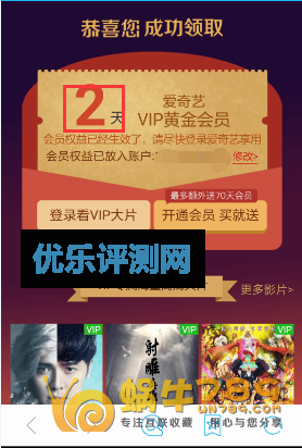 2、输入手机号码即可领取爱奇艺黄金会员体验天数,自己领取的是两天。手机号未注册或绑定的用户,在领取红包后7天内完成手机注册或绑定,即可实时激活抢到的VIP会员体验。