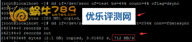 1、硬盘读写速度很重要,我们使用“dd if=/dev/zero of=test bs=64k count=4k oflag=dsync”和“dd if=/dev/zero of=test bs=8k count=256k conv=fdatasync”两个命令就能检测出磁盘IO读写速度。
