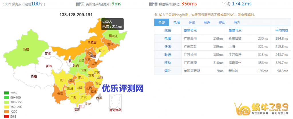 至于访问速度测试,我们可以使用站长工具超级ping来检查。超级ping检测点比较多,有国内电信、联通、移动线路,也有海外检测点。检测结果也非常直观。点击进入站长之家Ping检测页面。