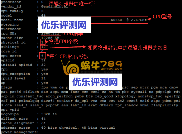 2、如何查看参数信息,这里做一个简单介绍:physical_id指物理CPU个数,cpu cores指内核数,Siblings相同物理封装上的逻辑处理器的数量,它们可能支持也可能不支持超线程(HT)技术。如果有一个以上逻辑处理器拥有相同的 core id 和 physical id,则说明系统支持超线程(HT)技术。如果有两个或两个以上的逻辑处理器拥有相同的 physical id,但是 core id 不同,则说明这是一个多内核处理器。如果“siblings”和“cpu cores”一致,则说明不支持超线程,或者超线程未打开。如果“siblings”是“cpu cores”的两倍,则说明支持超线程,并且超线程已打开。