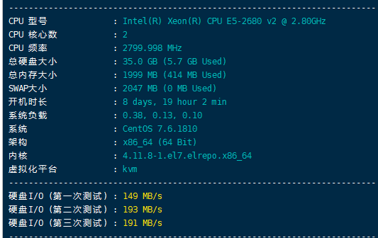 香港沙田测试(CN2 网络 测试机宽带为10M)