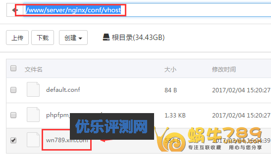 2、在“/www/server/nginx/conf/vhost”目录下找到站点的.conf文件。我这里是“wn789.xin.conf”。