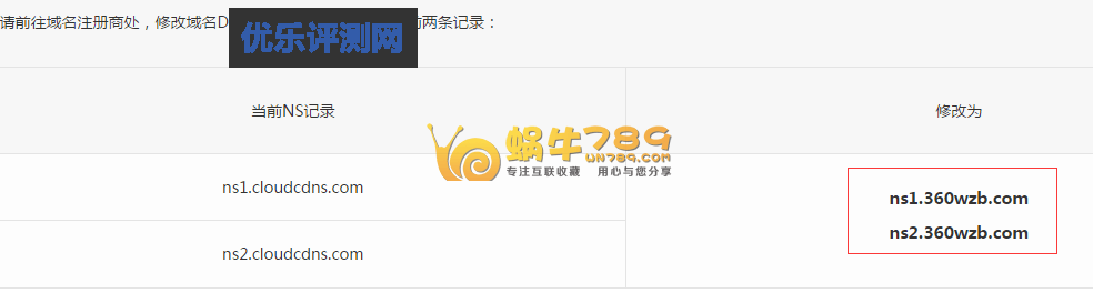 4、最后到你的域名控制面板修改DNS服务器地址,改为360网站卫士的DNS服务器地址。