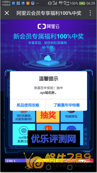 阿里云是国内最大的云服务器销售商,从2016年12月30日开启了会员免费抽奖活动(蜗牛发现得比较晚,目前只有6天的活动时间了),所有阿里云用户均可参与,抽奖奖品有:免费.xin、.xyz域名、30款免费云产品套餐邀请码(半年的云服务器使用权)、9折云服务器优惠码及一些实物奖品,中奖率高达100%,大家都可以试试。