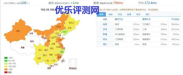 1、Asian optimized (亚洲优化线路),国内访问平均ping在170MS左右,中国电信、移动、联通访问速度基本一致,路由追踪显示属于大陆直连。测试IP179.61.135.5