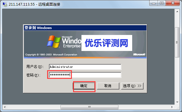 输入你的服务器密码,点击确认就可以连接到远程桌面了。