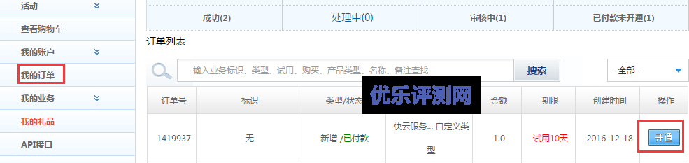 5、蜗牛联系了客户经理开通了。但是说客户经理说目前资源可能比较紧张,活动是有效的,有时候申请开通可能需要等待。下面开始开通自己的服务器。点击“我的订单”选择“开通”。