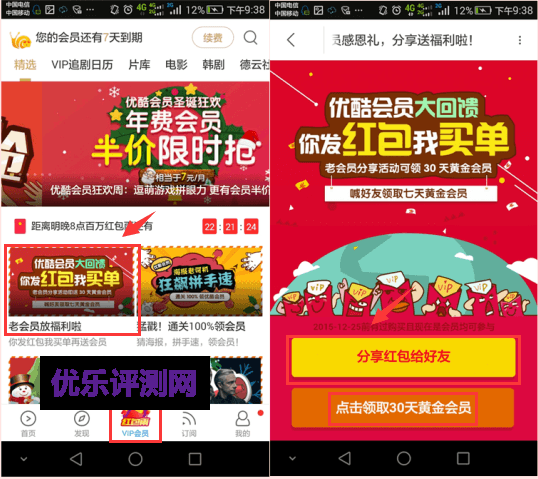 1、活动对象:2016年12月25日前充值过优酷会员且还是会员的用户