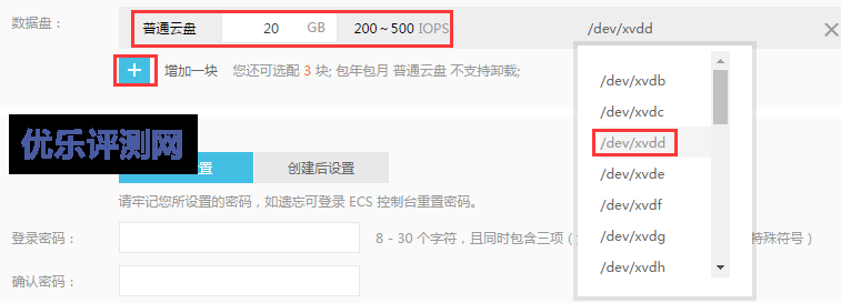 6、如果你选择Windows Server系统建议添加一块普通云盘。因为很多建站软件需要D盘。