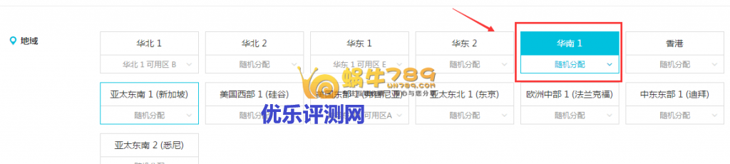 2、点击“立即购买”进入到配置选择页面。首先我们选择机房,可以根据自己需要选择机房,也可以选择有促销活动的机房。目前华南1深圳节点首购7折的优惠。