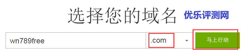 2、第二步填写你要注册的免费com域名,填写好点击“马上行动”检查域名是否可以使用。
