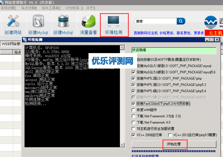 3、打开软件后点击“环境检测”,然后根据自己需要选择安装环境。