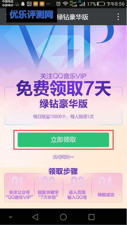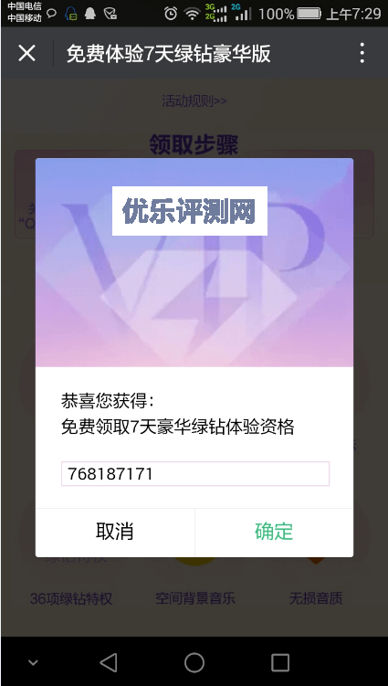 QQ音乐VIP微信公众号送绿钻活动介绍: