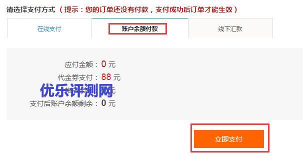5、我们选择使用代金券来抵扣。然后选择“账号余额付款”来完成结算。