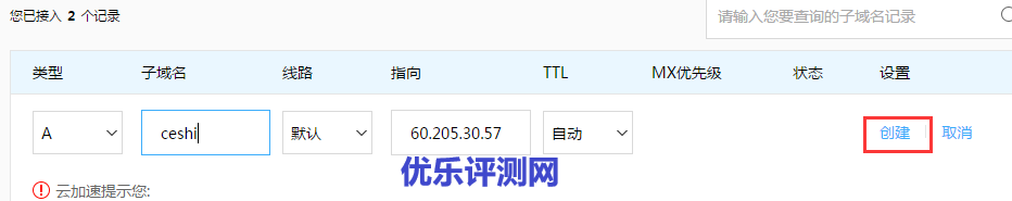绑定好域名后到你的域名解析控制面板添加解析记录。关于域名如何解析请参照:【DNSPod】国内支持未稳定域名的免费DNS解析使用教程、【百度云加速】百度旗下免费CDN网站访问加速使用教程