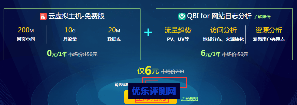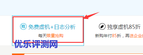 2、点击“免费虚机+日志分析”进入到免费云虚拟主机抢购页面。