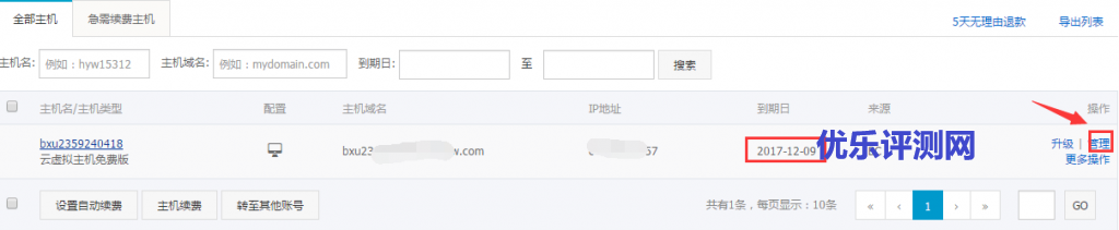 绑定手机后在回到阿里云虚拟主机管理页面点击“管理”就直接进入了主机管理面板。