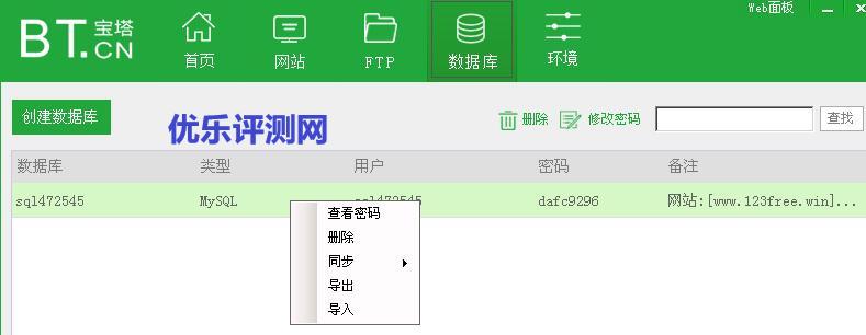 6、点击数据库,如果你要备份或导入数据库,在这里操作。