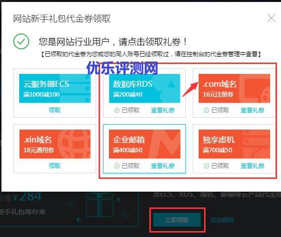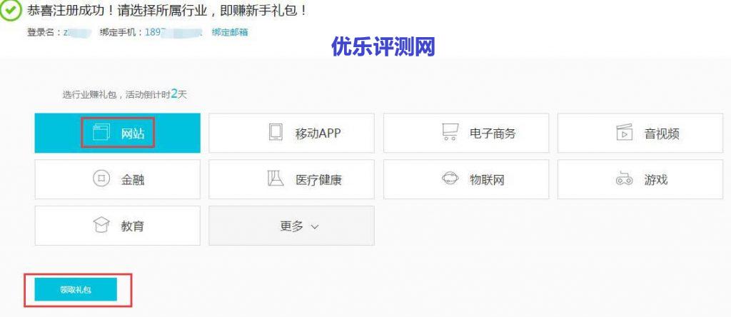 关于如何注册账号蜗牛就不多说了,注册好后我们选择所属行业,然后领取新手礼包。如果行业选择网站,我们可以领取到18元com域名注册优惠券,可以实现39元购买新com域名,具体教程可以参照阿里云新注册用户39元购买.com域名及33元年付主机推荐。