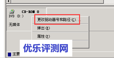 我们下拉找到光驱分区,然后右键点击选择“更改驱动器号和路径”。改成任意盘符。