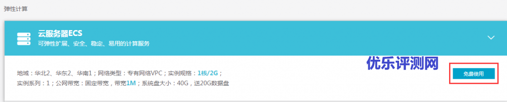5、我们选择云服务器ECS套餐,点击”免费开通“