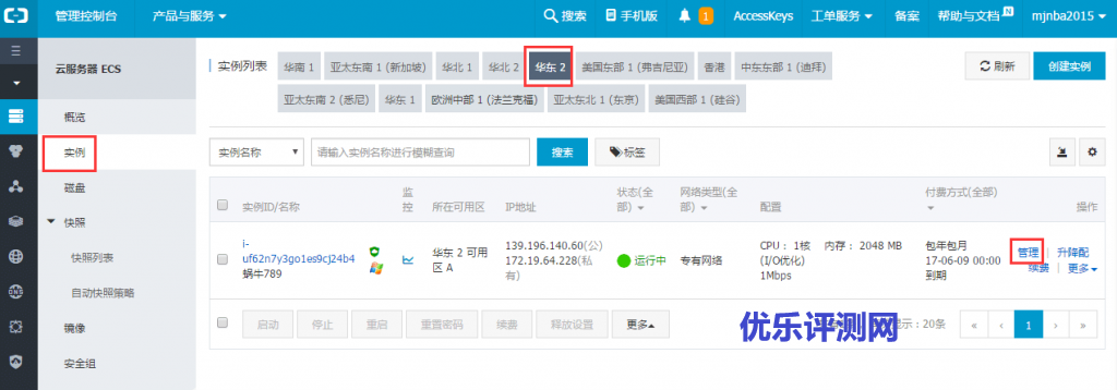 8、购买完成之后,我们点击“管理控制台”进入到控制面板,以后你要管理自己的服务器,请点击“控制台”,然后选择“云服务器ECS”,再点击“实例”,选择好自己机房的位置,就能查看到自己服务器。
