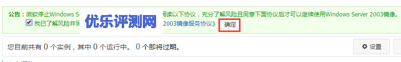 在页面上方有个绿色的公告是关于Windows Server 2003,我们勾选并确定,以后就可以选择2003系统了。